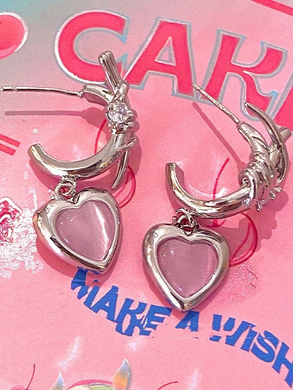 Stone Heart Charm Earrings