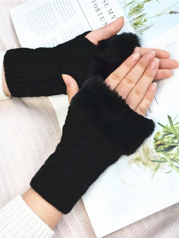 Faux Fur Trim Cable Knit Fingerless Gloves