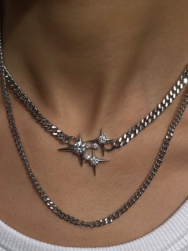 Double Layered Chain Rhinestone Star Charm Necklace