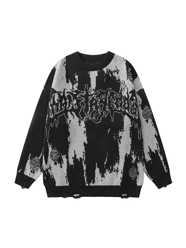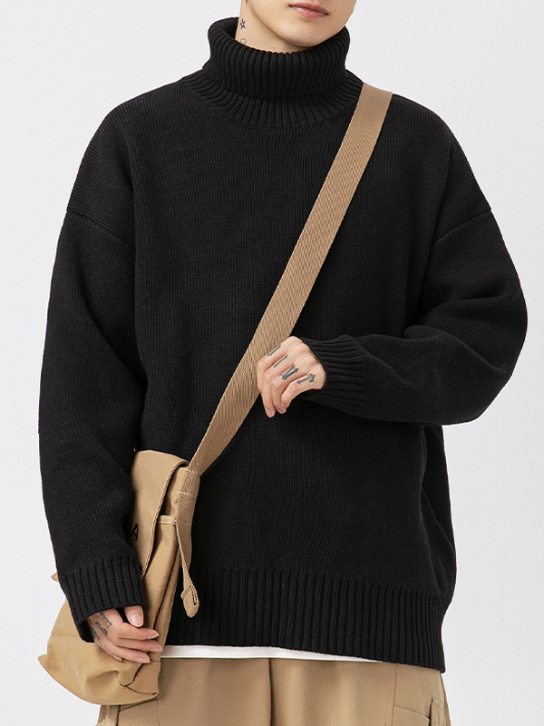 Men’s Letter Jacquard Tassel Design High Neck Sweater