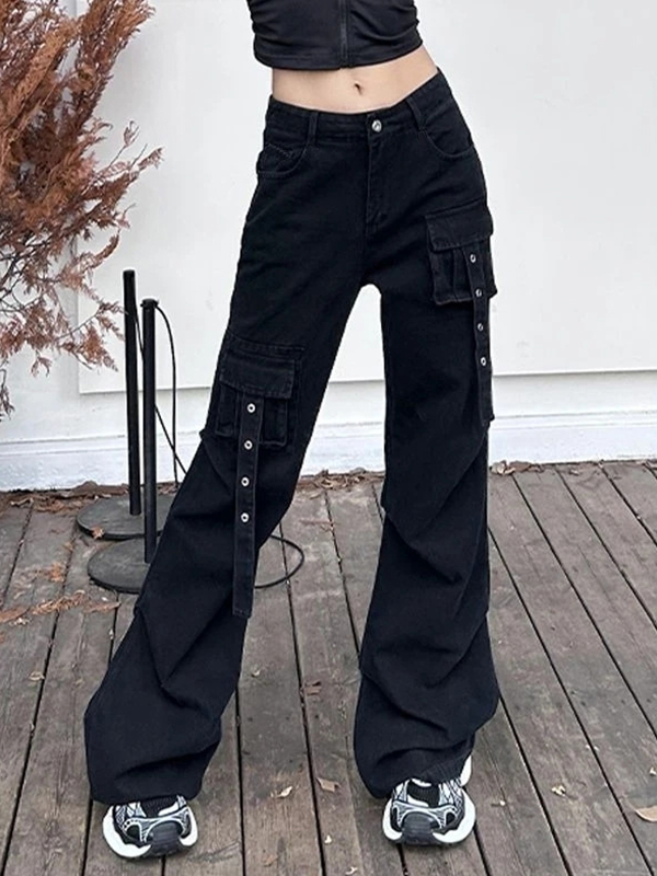 Multi Pocket Eyelet Design Cargo Jeans