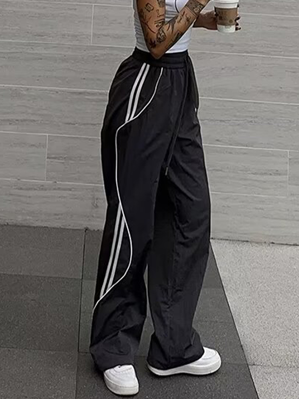 Side Stripes Contrast Color Wide Leg Pants