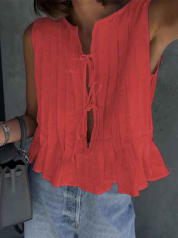 Tie strap cotton and linen vest