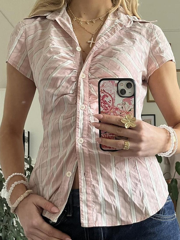 Pinstripe V Neck Breasted Long Sleeve Blouse