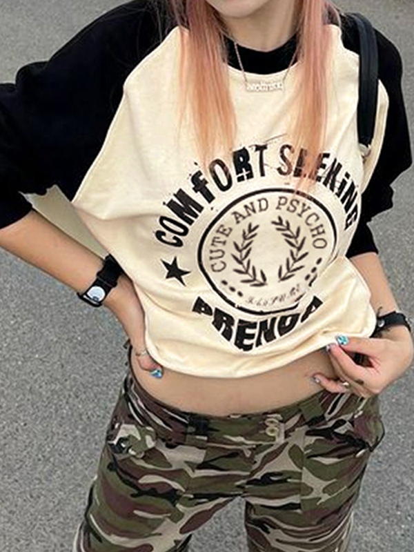Men’ Retro Raglan Print Long Sleeve Tee