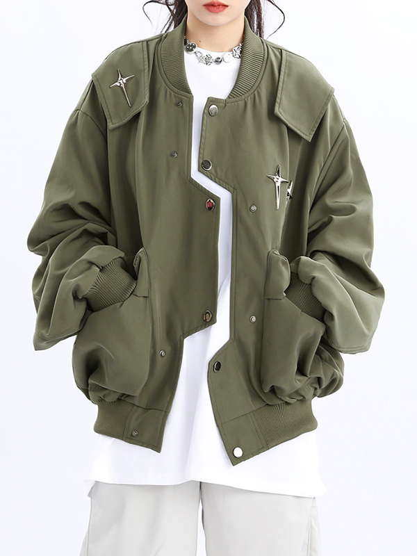 Vintage Irregular Placket Metal Star Decor Varsity Jacket