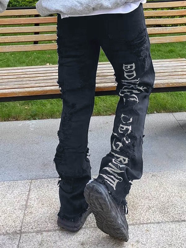 Men’s Washed Ripped Burr Straight Leg Jeans