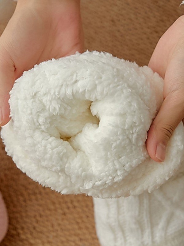 Details: These soft and comfortable bootie socks made from cable knit fabric, with thick warm fleece lining, and anti-slip bottom design.