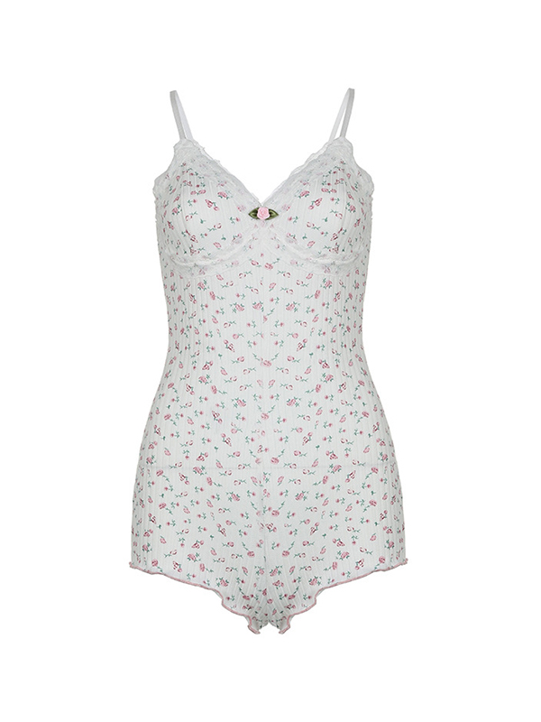 Unique Design: The ditsy floral print and lace trim design give this jumpsuit a girlish and sweet vibe. The V neck and cami top design make it sexy and summery, adding a touch of femininity to your look.