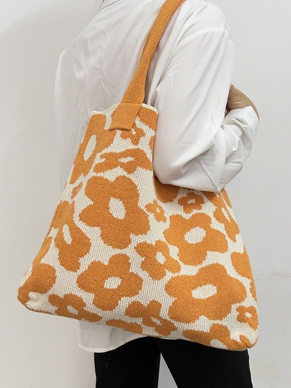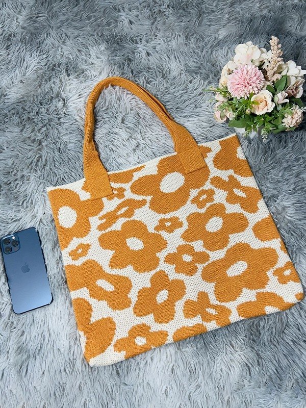 Be the first to review “Floral Jacquard Knitted Tote Bag”