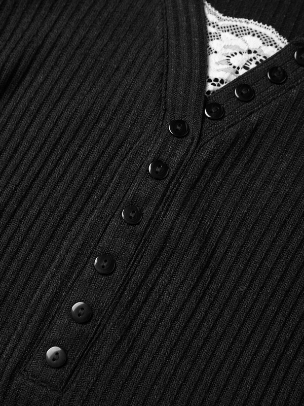 Be the first to review “Lace Paneled Button Long Sleeve Knit Top”