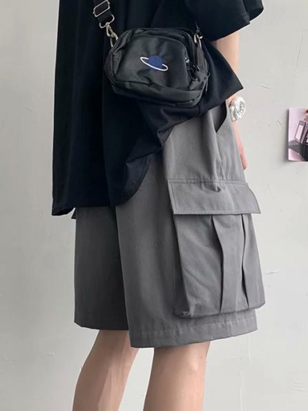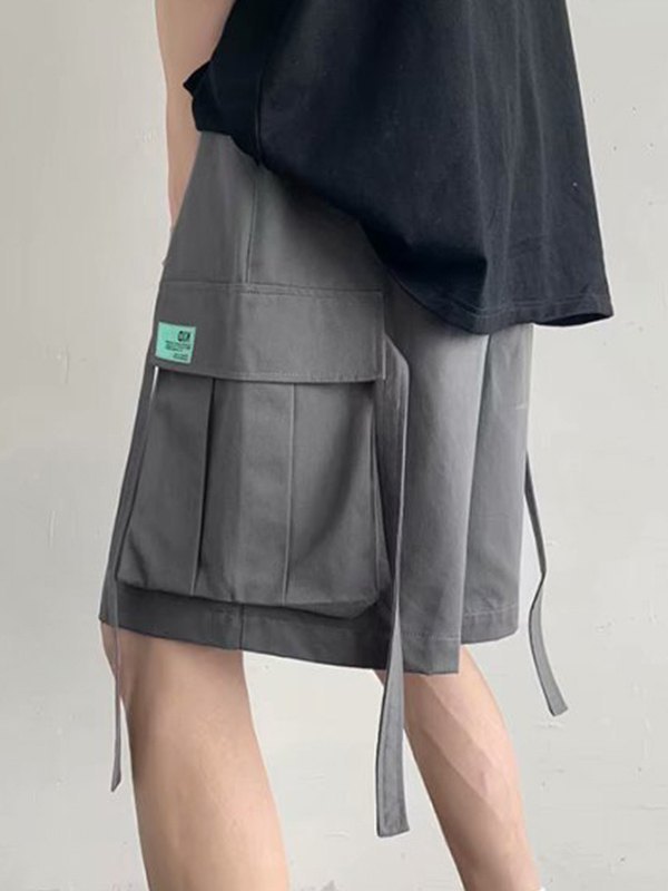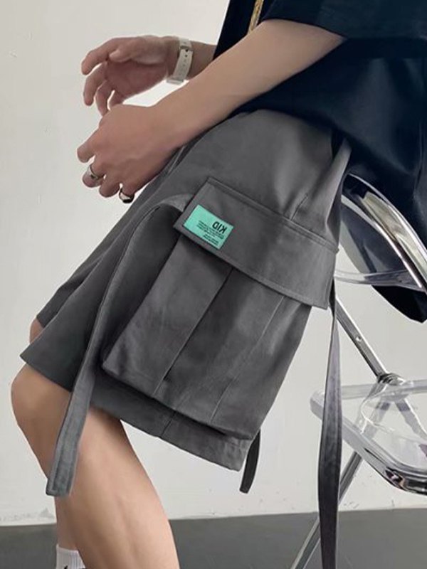 Description: Shaped with an elasticated drawcord waistStyle, features cargo leg pockets with extended straps on it, and has a label paneled design.