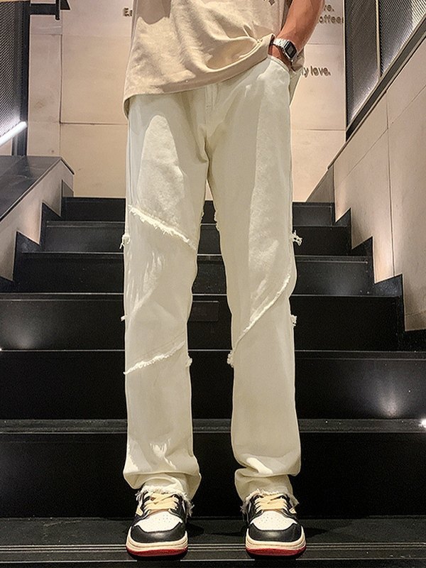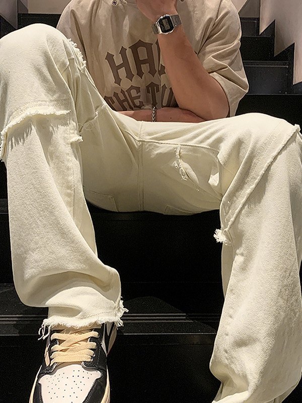 Unique design: The frayed white straight-leg jeans have a unique and stylish design that sets them apart from traditional jeans.