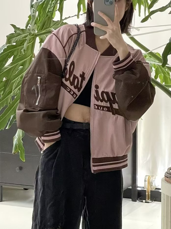 Be the first to review “Retro Pink Contrast Long Sleeves Jacket”