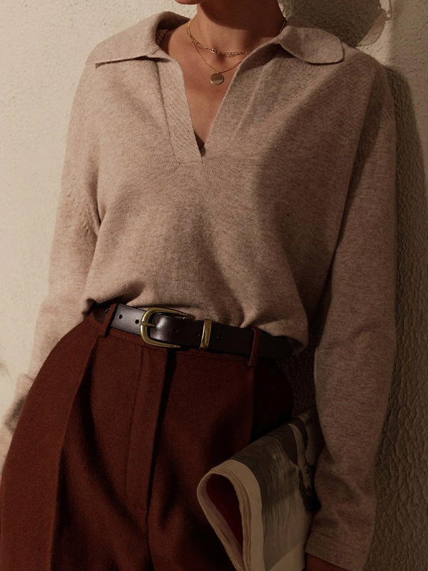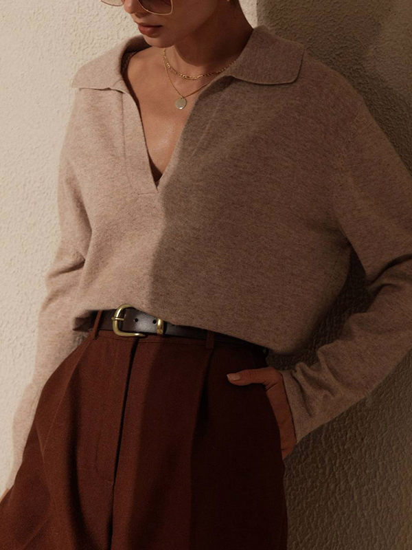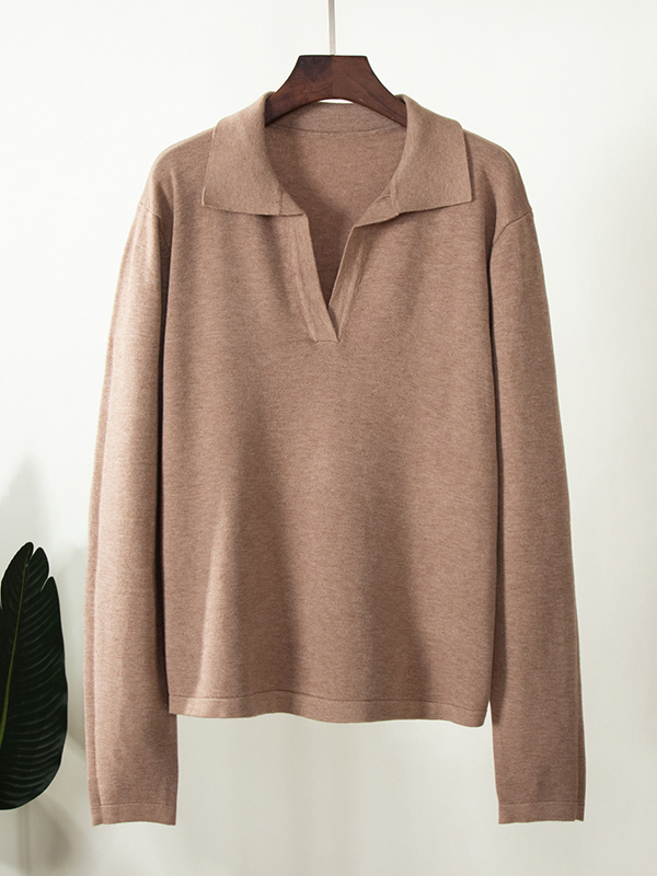 Be the first to review “Solid Lapel Neck Knit Sweater”