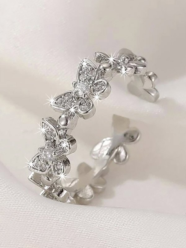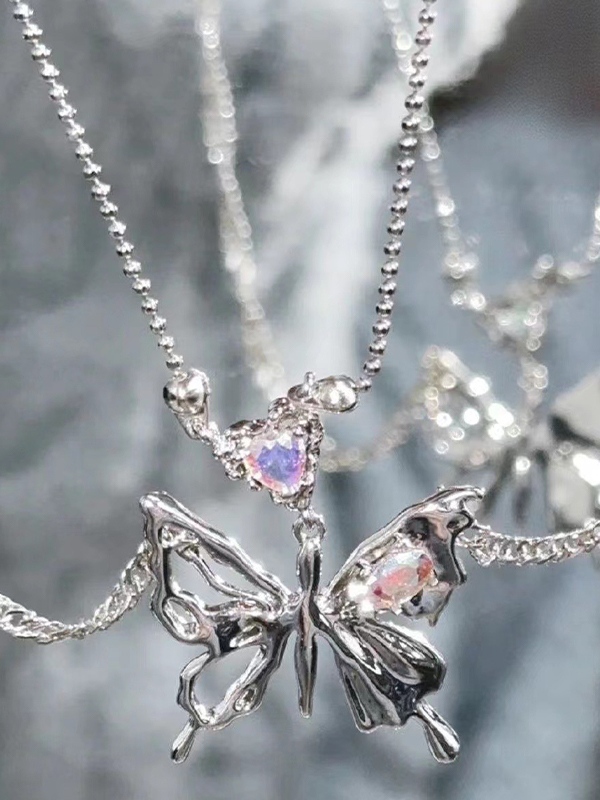 Double Layered Rhinestone Butterfly Pendant Necklace