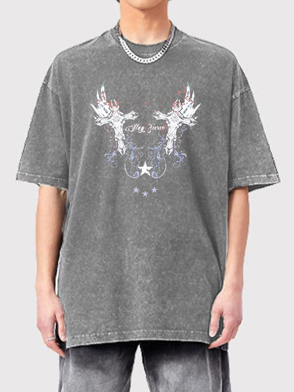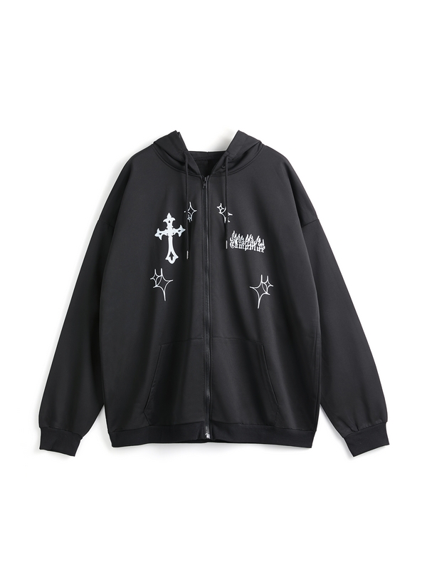 Men’ Vintage Star Cross Print Zip Up Oversized Hoodie
