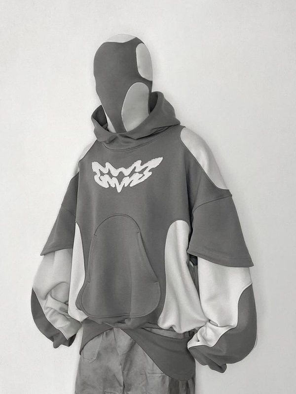 Men’s Contrast Color Print Kangaroo Pocket Oversized Hoodie