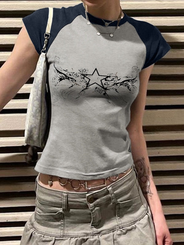 Raglan Sleeves Print Oversized Short Sleeve Tee